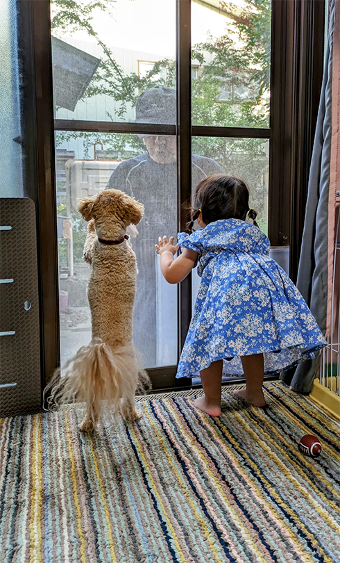 大好きなおじいちゃんのご飯がおいしそうでじーっと見つめています?